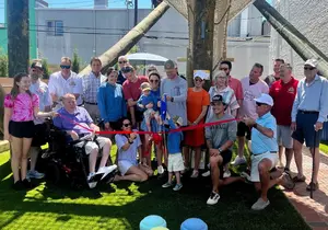 OCEAN CITY, N.J. – TJ Heist, owner of The Yard, along with his family, the Ocean City Regional Chamber of Commerce, dignitaries and members of the business community, gathered Thursday to celebrate the opening of his new aerial adventure park at 741 West Avenue.
