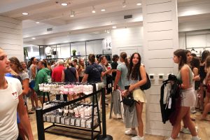 Shoppers lined up around the block to check out what Lululemon had to offer. During a ribbon cutting ceremony, Michele Gillian, Executive Director of the Ocean City Regional Chamber of Commerce, thanked the Lululemon team for investing in the community and noted growth in the downtown, from remodels to new businesses opening making the resort the place to shop, dine and enjoy. Lululemon moved into the storefront formerly occupied by Ron Jon Surf Shop.